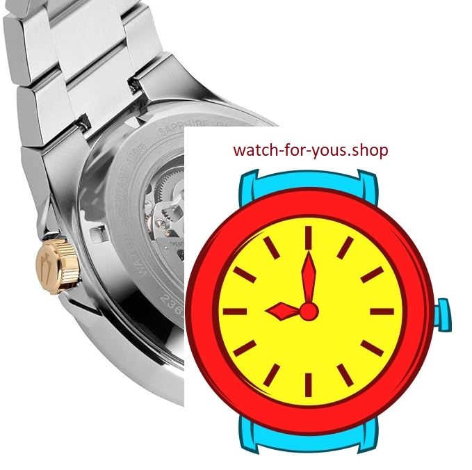 - Three-hand analog display with automatic mechanical movement.